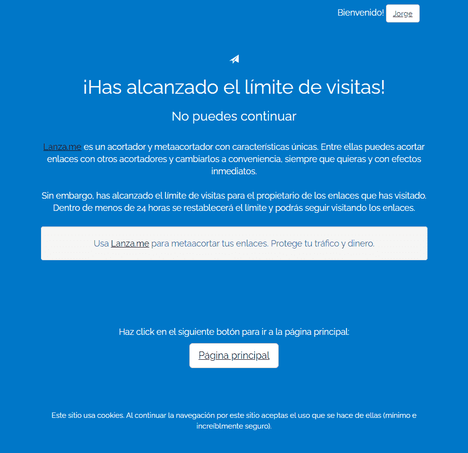 El limitador para faucets se activa cuando Lanza.me ya ha empleado todos tus acortadores disponibles y se han agotado las visitas monetizables. En ese momentos las visitas a tus enlaces no podrán acceder al enlace de destino y, en su lugar, irán a una página interna e informativa de Lanza.me que les explicará porqué están allí y que tienen que esperar 24 horas desde la primera visita para poder seguir ganando monedas con tus enlaces.